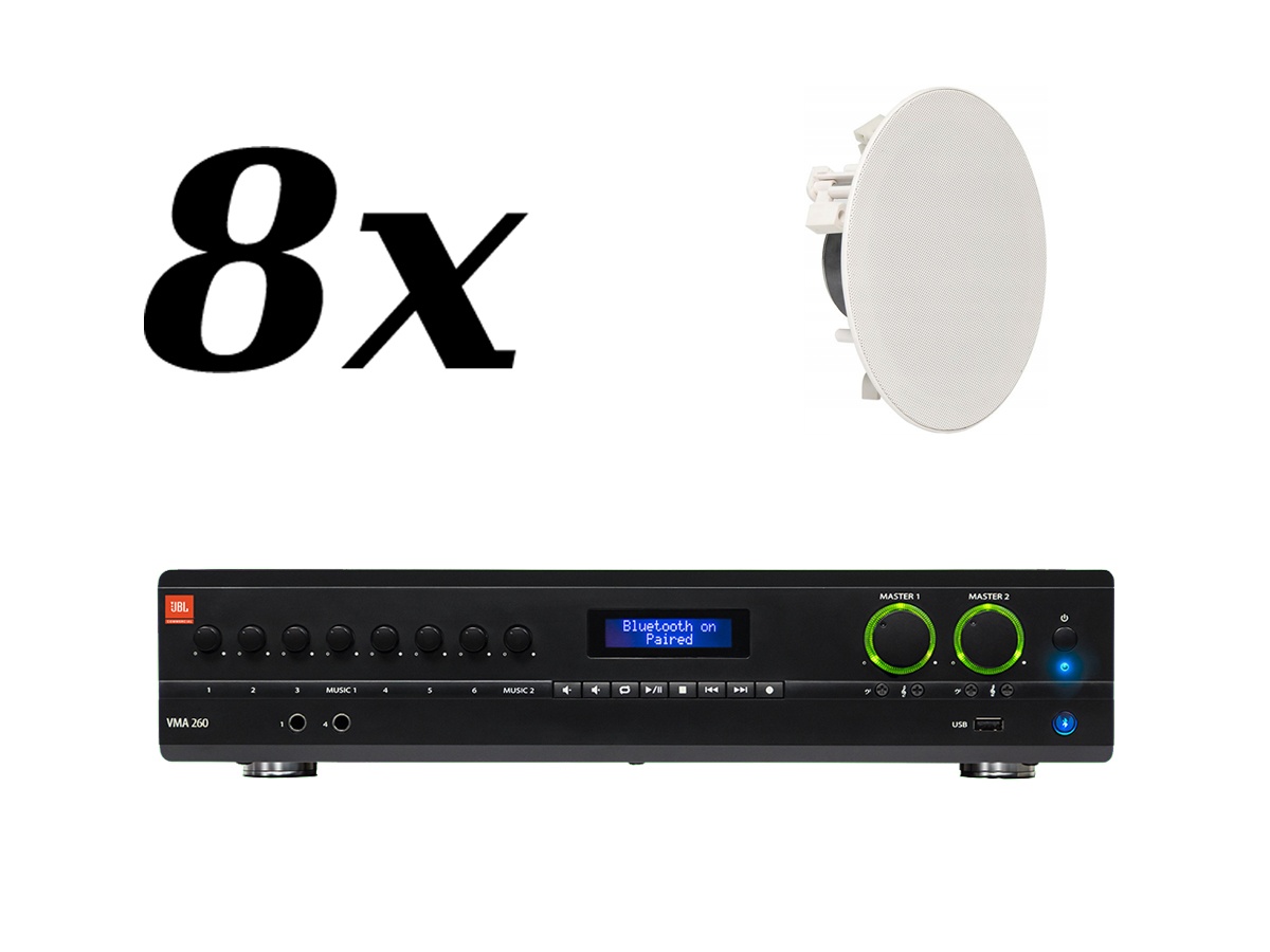 Zestaw przeznaczony jest do nagłośnienia powierzchni nie przekraczającej 150 m². W skład zestawu wchodzi: 8 głośników sufitowych AMC PCR 5T oraz wzmacniacz JBL VMA 260. Wzmacniacz posiada wbudowany odtwarzacz MP3 z tunerem FM oraz Bluetooth.