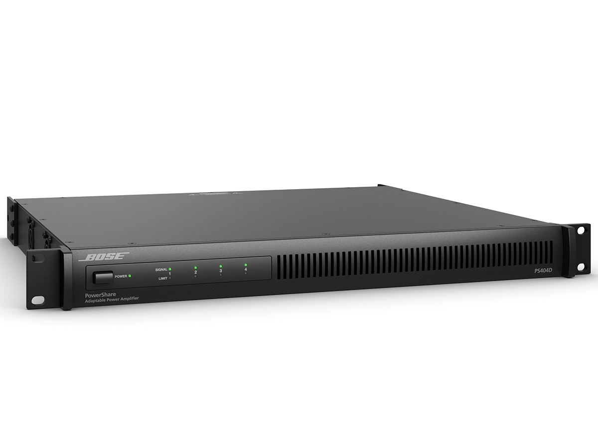 Bose PowerShare PS404D to niezwykły wzmacniacz, który posiada zintegrowaną sieć Dante Auto Networking, która pozwala m.in. mieszać wejścia analogowe z cyfrowymi. System podwójnej pętli sprzężenia zwrotnego, co pozwala nieustannie kontrolować ilość dostarczanego prądu oraz poziomu napięcia. W ten sposób głośniki są należycie chronione przed zniszczeniem, a dźwięki są bardziej płynne i klarowne