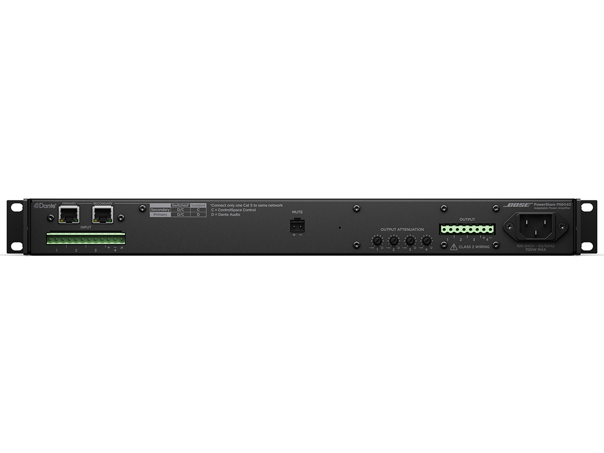 Bose PowerShare PS604D to niezwykły wzmacniacz, który posiada zintegrowaną sieć Dante Auto Networking, która pozwala m.in. mieszać wejścia analogowe z cyfrowymi. System podwójnej pętli sprzężenia zwrotnego, co pozwala nieustannie kontrolować ilość dostarczanego prądu oraz poziomu napięcia. W ten sposób głośniki są należycie chronione przed zniszczeniem, a dźwięki są bardziej płynne i klarowne