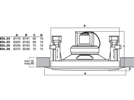 MONACOR EDL-706/12 Głośnik sufitowy PA Technika 100V, transformator audio z odczepami mocy Głośnik pełnopasmowy dwustożkowy, typ 165 Dobra zrozumiałość mowy