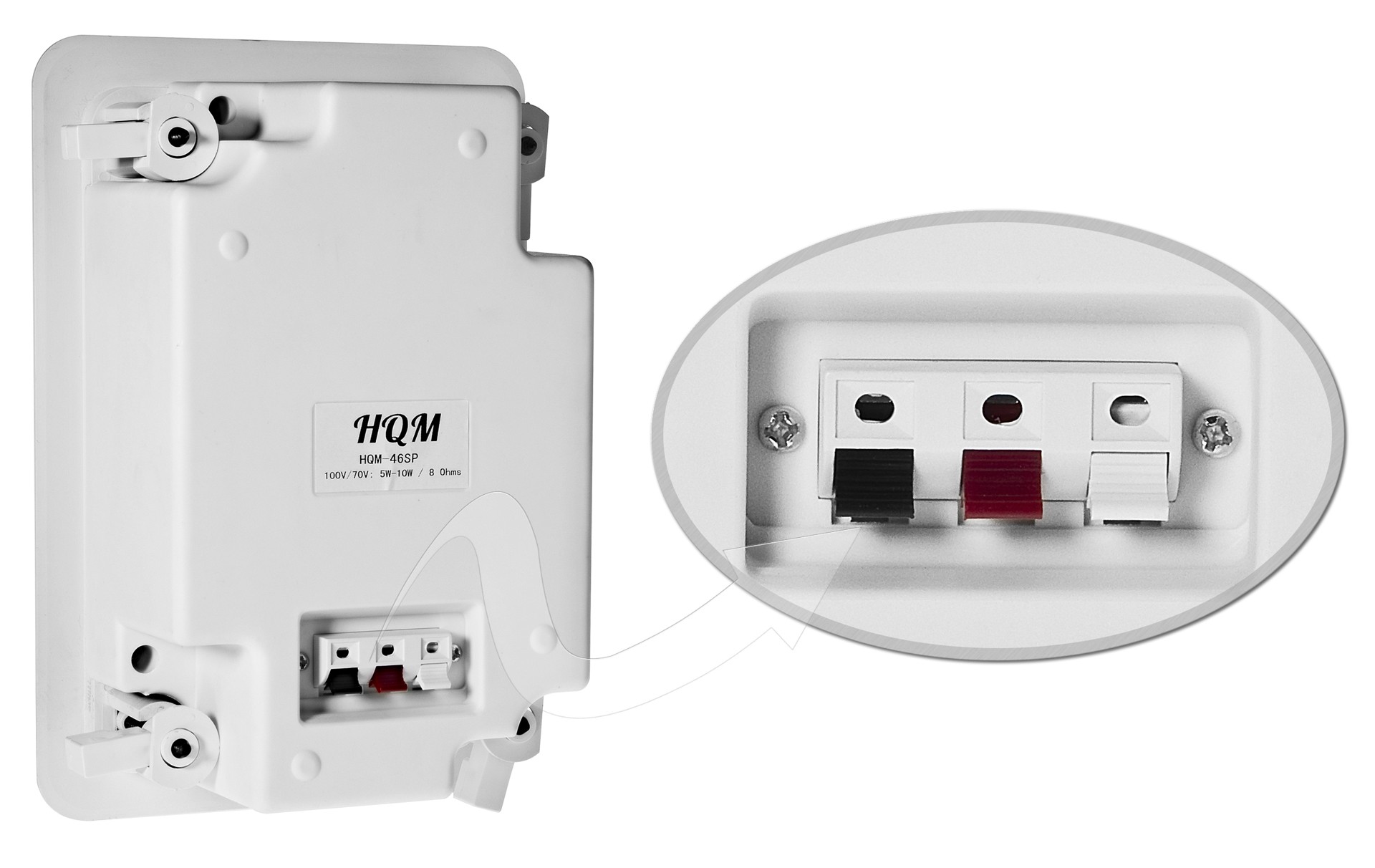 Dwudrożny głośnik HQM 46SP charakteryzuje się możliwością szybkiego i łatwego podłączenia przewodów bez konieczności ingerencji w zawartość urządzenia, to pozwala użytkownikowi na swobodną modyfikację elementów nagłośnienia oraz komfort użytkowania.