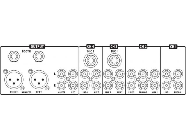 - 4 kanały wejściowe stereo, przełączane MP3/phono/linia (kanał 1), aux/phono/linia (kanał 2) oraz aux/mikr./linia (kanały 3-4)