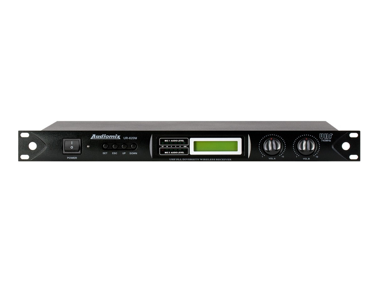 UR-620M to dwukanałowy wieloczęstotliwościowy zestaw mikrofonów bezpprzewodowych PLL. Zestaw składa się z jednostki bazowej (odbiornika) oraz dwóch nadajników o zasięgu do 100m
