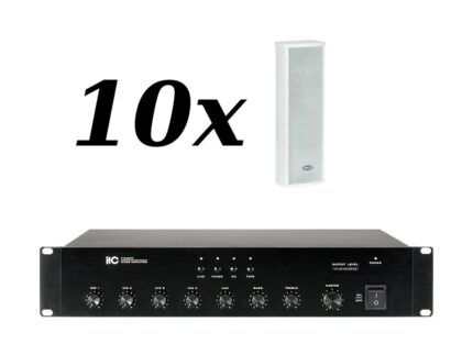 Zestaw przeznaczony jest do nagłośnienia powierzchni nie przekraczającej 150 m². W skład zestawu wchodzi: 8 kolumn naściennych ITC T-704A oraz wzmacniacz MONACOR PA-924.