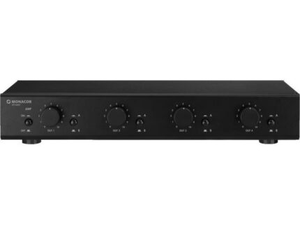 MONACOR ATT-442ST 4-kanałowy regulator głośności, stereo Wysoka jakość dzięki technice transformatorowej z uniwersalnymi wyjściami (4-16Ω dla każdego głośnika), pasmo przenoszenia