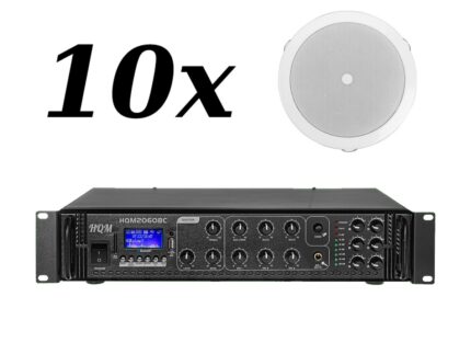 Zestaw przeznaczony jest do nagłośnienia powierzchni nie przekraczającej 200 m². W skład zestawu wchodzi: 10 głośników sufitowych MONACOR EDL-606, oraz wzmacniacz HQM 2060BC.
