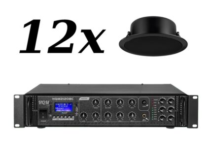 Zestaw przeznaczony jest do nagłośnienia powierzchni nie przekraczającej 200 m². W skład zestawu wchodzi: 12 głośników sufitowych MONACOR EDL-11TW/SW, oraz wzmacniacz HQM 2120BC