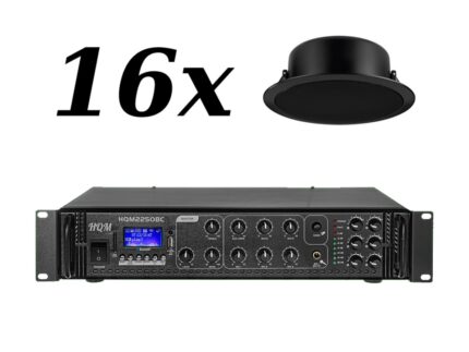Zestaw przeznaczony jest do nagłośnienia powierzchni nie przekraczającej 300 m². W skład zestawu wchodzi: 16 głośników sufitowych MONACOR EDL-11TW/SW, oraz wzmacniacz HQM 2250BC