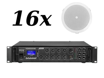 Zestaw przeznaczony jest do nagłośnienia powierzchni nie przekraczającej 300 m². W skład zestawu wchodzi: 16 głośników sufitowych MONACOR EDL-606, oraz wzmacniacz HQM 2120BC