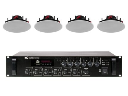 Zestaw przeznaczony jest do nagłośnienia powierzchni nie przekraczającej 60 m². W skład zestawu wchodzą: 4 głośniki sufitowe MONACOR EDL-82HQ, oraz wzmacniacz wielostrefowy ITC TI-1206S