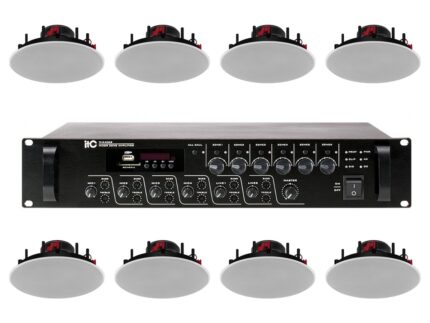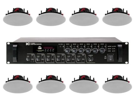 Zestaw przeznaczony jest do nagłośnienia powierzchni nie przekraczającej 150 m². W skład zestawu wchodzi: 8 głośników sufitowych MONACOR EDL-62HQ, oraz wzmacniacz wielostrefowy ITC TI-2406S