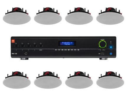 8x MONACOR EDL-82HQ + JBL VMA 1120 – nagłośnienie sufitowe do 150m2