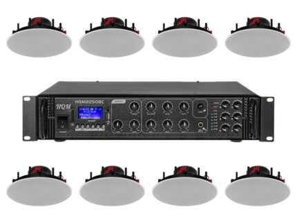 Zestaw przeznaczony jest do nagłośnienia powierzchni nie przekraczającej 150 m². W skład zestawu wchodzi: 8 głośników sufitowych MONACOR EDL-62HQ, oraz wzmacniacz HQM 2250BC