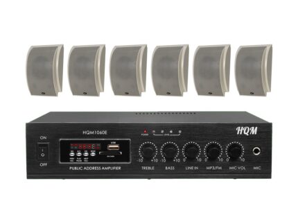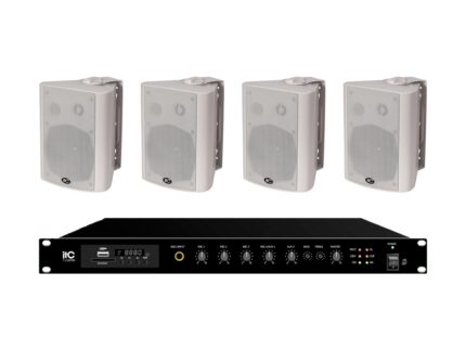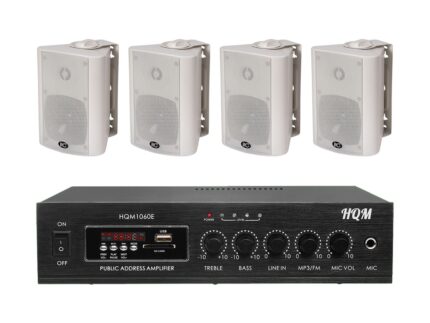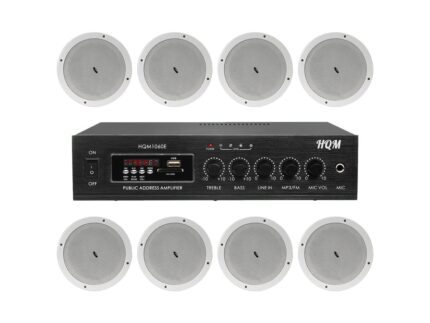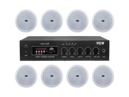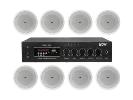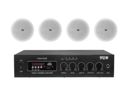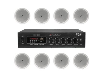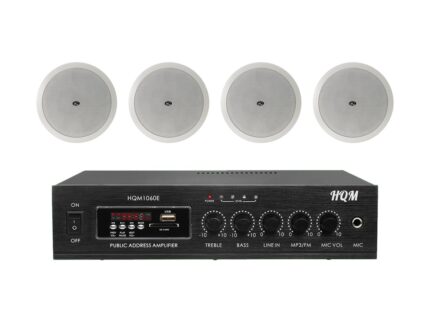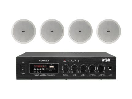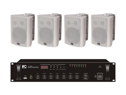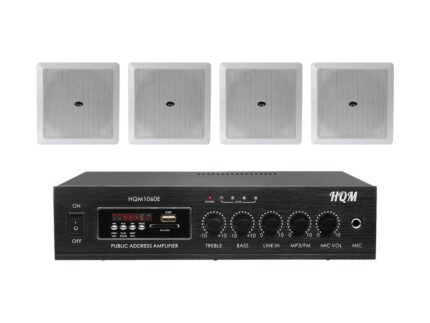 Zestaw przeznaczony jest do nagłośnienia powierzchni nie przekraczającej 60 m². W skład zestawu wchodzi: 4 głośniki sufitowe ITC T-206A oraz wzmacniacz jednostrefowy HQM 1060E.