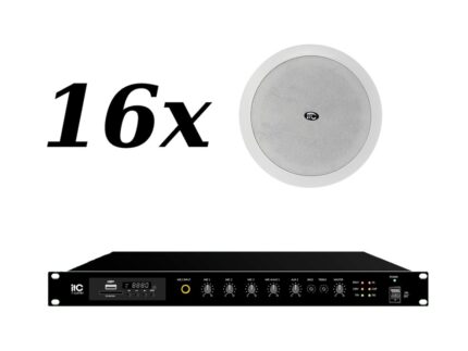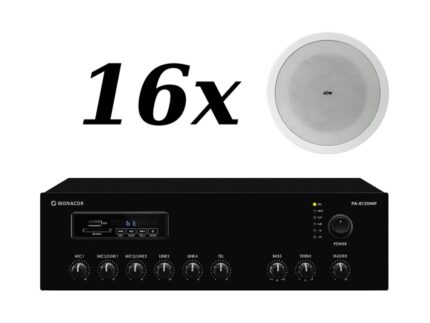 Zestaw przeznaczony jest do nagłośnienia powierzchni nie przekraczającej 300 m². W skład zestawu wchodzi: 16 głośników sufitowych ITC T-106 oraz wzmacniacz jednostrefowy MONACOR PA-812DMP