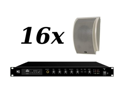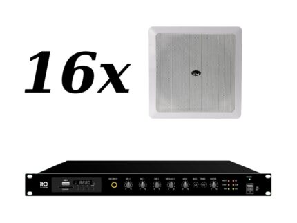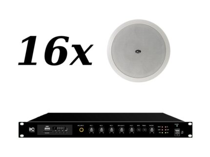 Zestaw przeznaczony jest do nagłośnienia powierzchni nie przekraczającej 300 m². W skład zestawu wchodzi: 16 głośników sufitowych ITC T-206A oraz wzmacniacz jednostrefowy ITC T-1240TBV.