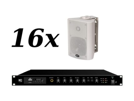 Zestaw przeznaczony jest do nagłośnienia powierzchni nie przekraczającej 300 m². W skład zestawu wchodzi: 16 głośników naściennych ITC T-612 oraz wzmacniacz jednostrefowy ITC T-1240TBV.