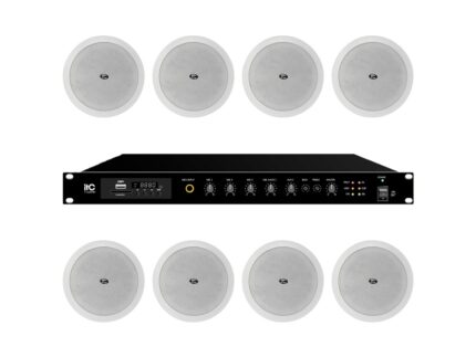 Zestaw przeznaczony jest do nagłośnienia powierzchni nie przekraczającej 150 m². W skład zestawu wchodzi: 8 głośników sufitowych ITC T-205B oraz wzmacniacz jednostrefowy HQM1060E.