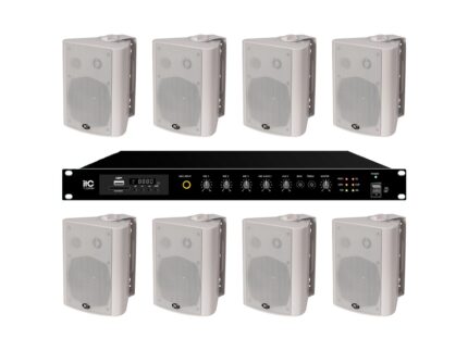 Zestaw przeznaczony jest do nagłośnienia powierzchni nieprzekraczającej 150 m². W skład zestawu wchodzi: 8 głośników naściennych ITC T-775 oraz wzmacniacz jednostrefowy ITC T-1240TBV