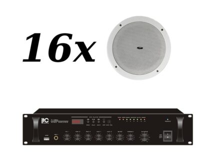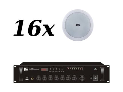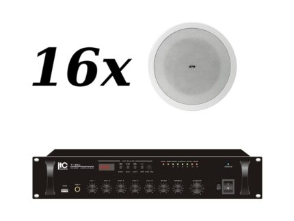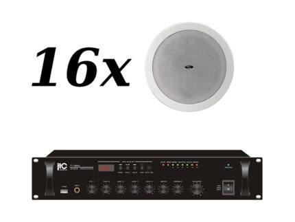 Zestaw przeznaczony jest do nagłośnienia powierzchni nie przekraczającej 300 m². W skład zestawu wchodzi: 16 głośników sufitowych ITC T-206B oraz wzmacniacz jednostrefowy ITC T-120.