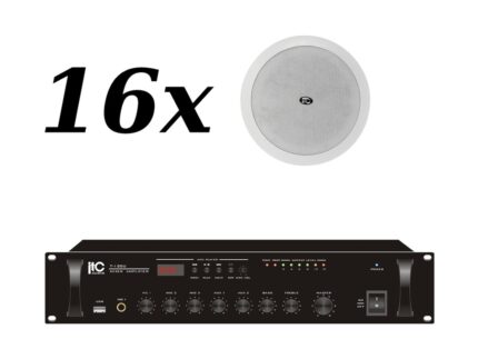 Zestaw przeznaczony jest do nagłośnienia powierzchni nie przekraczającej 300 m². W skład zestawu wchodzi: 16 głośników sufitowych ITC T-106 oraz wzmacniacz jednostrefowy ITC T-120.