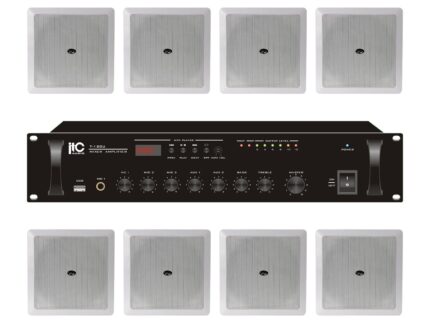 Zestaw przeznaczony jest do nagłośnienia powierzchni nie przekraczającej 150 m². W skład zestawu wchodzi: 8 głośników sufitowych ITC T-206B oraz wzmacniacz jednostrefowy ITC T-60