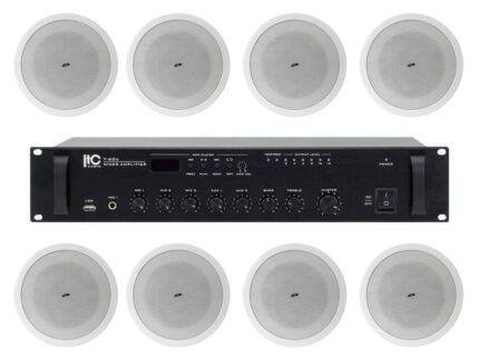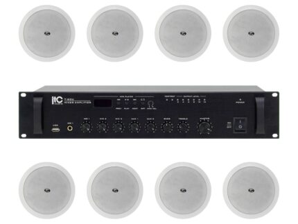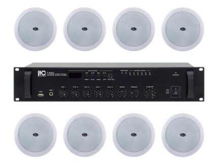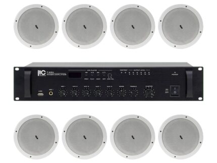 Zestaw przeznaczony jest do nagłośnienia powierzchni nie przekraczającej 150 m². W skład zestawu wchodzi: 8 głośników sufitowych ITC T-208B oraz wzmacniacz jednostrefowy ITC T-120.
