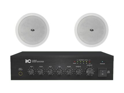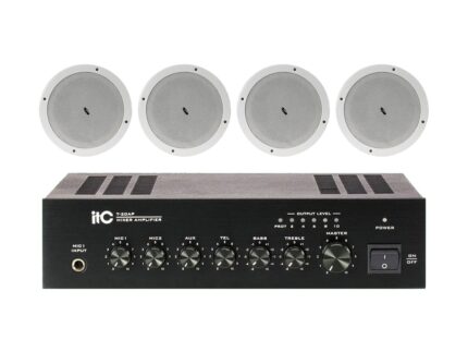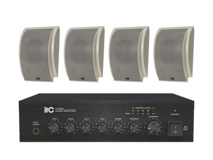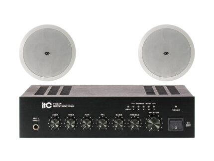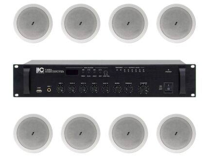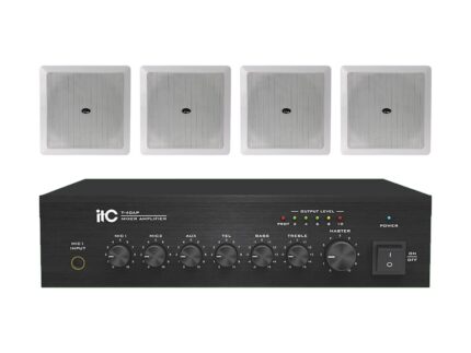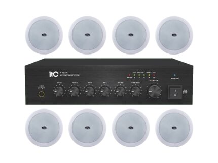Zestaw przeznaczony jest do nagłośnienia powierzchni nie przekraczającej 150 m². W skład zestawu wchodzi: 8 głośników sufitowych ITC T-206B oraz wzmacniacz jednostrefowy ITC T-40 AP.