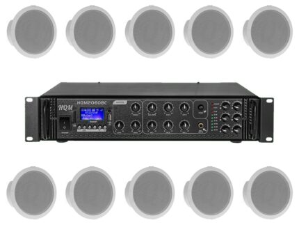 Zestaw przeznaczony jest do nagłośnienia powierzchni nie przekraczającej 200 m². W skład zestawu wchodzą: 10 jednodrożnych głośników sufitowych HQM SO615 oraz wzmacniacz HQM 2060BC