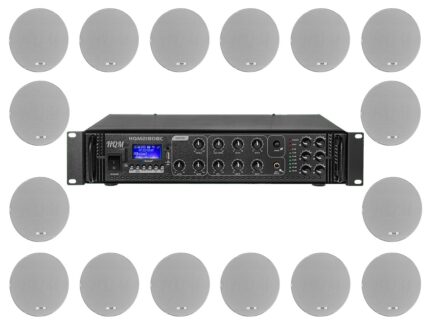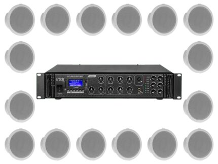 Zestaw przeznaczony jest do nagłośnienia powierzchni nie przekraczającej 300 m². W skład zestawu wchodzi: 16 jednodrożnych głośników sufitowych HQM SOZ616 oraz wzmacniacz HQM 2180BC