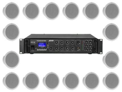 Zestaw przeznaczony jest do nagłośnienia powierzchni nie przekraczającej 300 m². W skład zestawu wchodzi: 16 jednodrożnych głośników sufitowych HQM SOZ616 oraz wzmacniacz HQM 2120BC