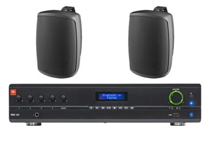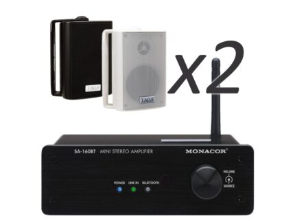 Zestaw przeznaczony jest do nagłośnienia powierzchni nie przekraczającej 30 m². W skład zestawu wchodzą: 2 głośniki naścienne MONACOR WALL-06T, oraz wzmacniacz JBL VMA 160