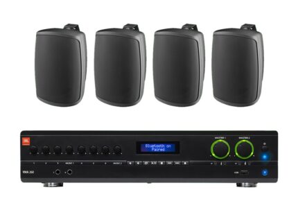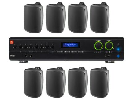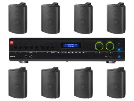 Zestaw przeznaczony jest do nagłośnienia powierzchni nie przekraczającej 60 m². W skład zestawu wchodzą: 4 głośniki naścienne MONACOR WALL-06T, oraz wzmacniacz JBL VMA 260
