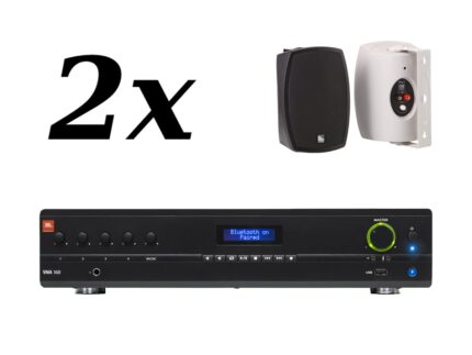 Zestaw przeznaczony jest do nagłośnienia powierzchni nie przekraczającej 30 m². W skład zestawu wchodzą: 2 kolumny naścienne AMC iPLAY 5T oraz wzmacniacz JBL VMA 160
