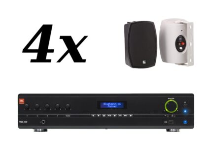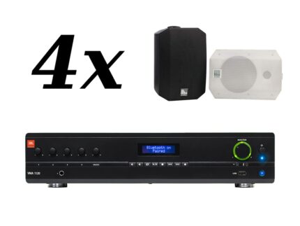 Zestaw przeznaczony jest do nagłośnienia powierzchni nie przekraczającej 60 m². W skład zestawu wchodzą: 4 kolumny naścienne AMC iPLAY 4T oraz wzmacniacz JBL VMA 160