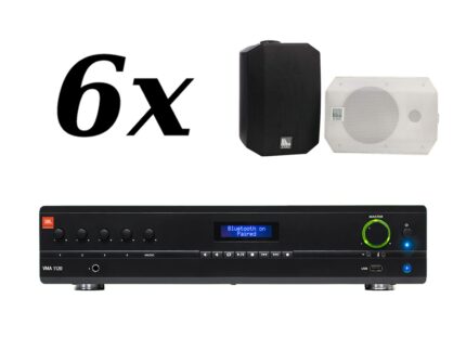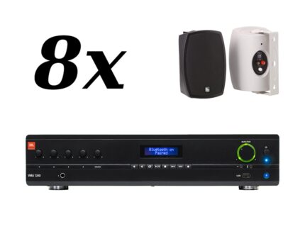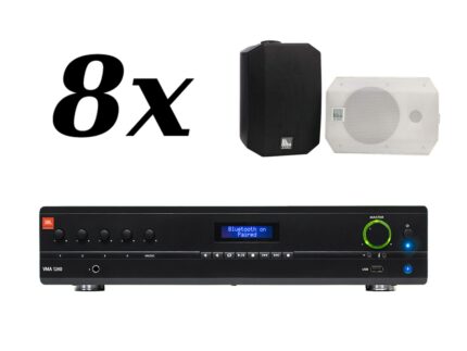 Zestaw przeznaczony jest do nagłośnienia powierzchni nie przekraczającej 150 m². W skład zestawu wchodzi: 8 kolumn naściennych AMC iPLAY 5T oraz wzmacniacz JBL VMA 1240