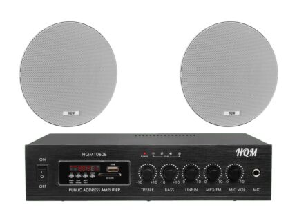 Zestaw przeznaczony jest do nagłośnienia małej powierzchni nie przekraczającej 30 m². W skład zestawu wchodzą: 2 dwudrożne głośniki sufitowe HQM SOZ10 oraz wzmacniacz HQM 1060E.