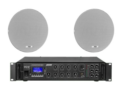 Zestaw przeznaczony jest do nagłośnienia powierzchni nie przekraczającej 60 m². W skład zestawu wchodzą: 4 dwudrożne kolumny sufitowe HQM SO615 oraz wzmacniacz HQM 2060BC