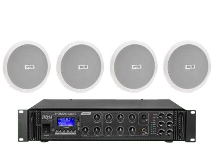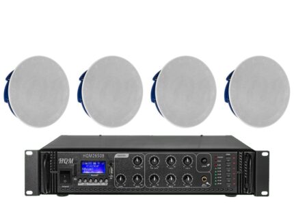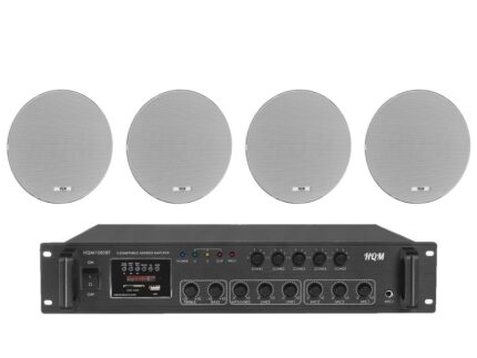 Zestaw przeznaczony jest do nagłośnienia powierzchni nie przekraczającej 60 m². W skład zestawu wchodzą: 4 dwudrożne głośniki sufitowe HQM SOZ10 oraz wzmacniacz HQM 1080BT
